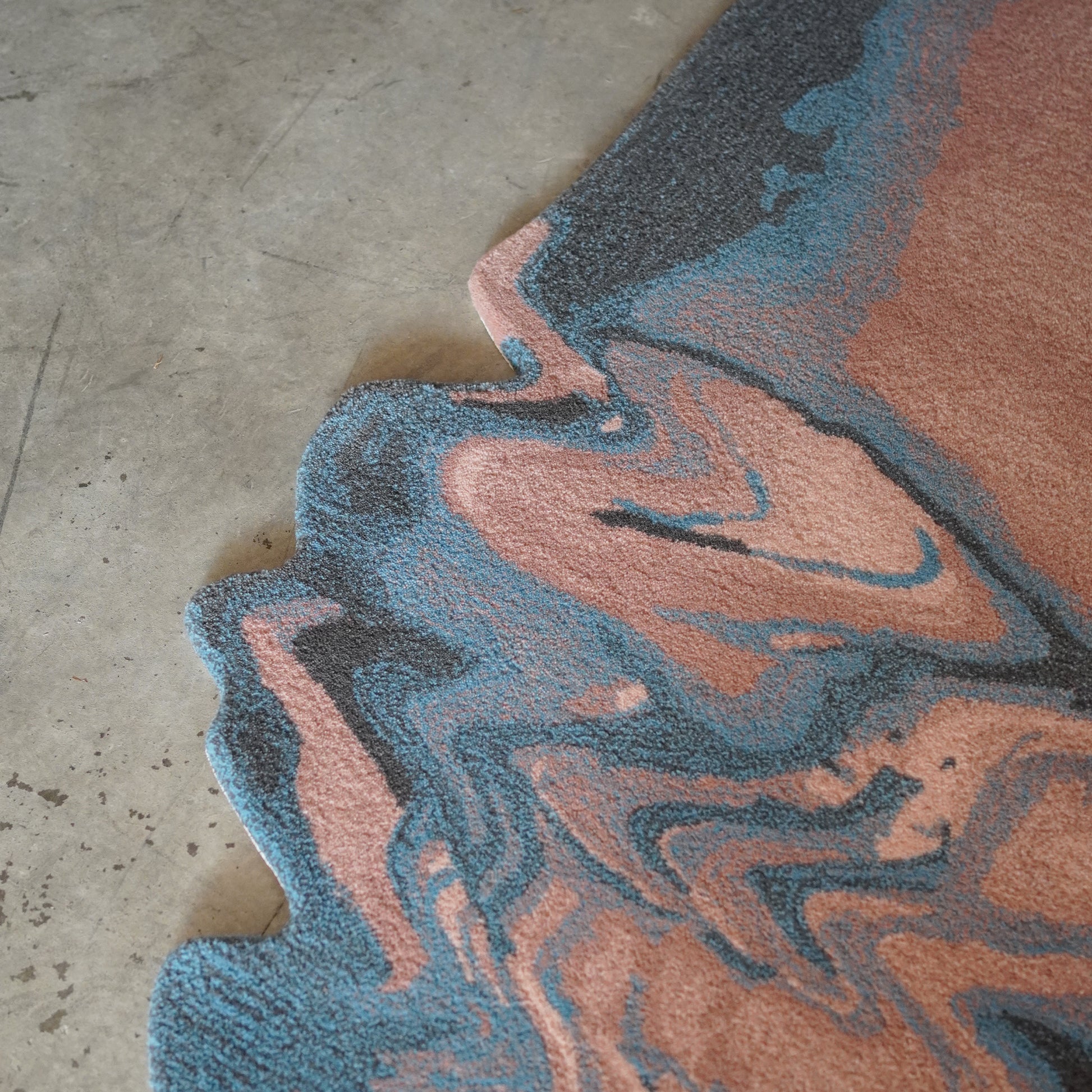 This design is a distorted form of a familiar symbol. When laid on the floor, this piece brings the space together like a piece of modern art, creating a distinctive atmosphere.