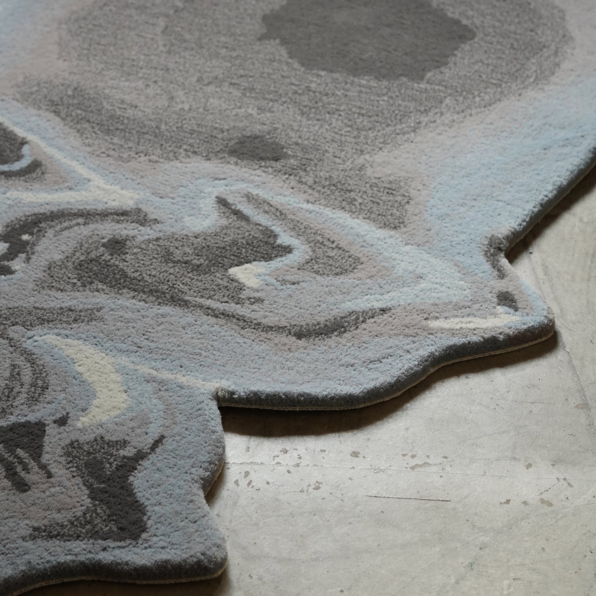 This design is a distorted form of a familiar symbol. When laid on the floor, this piece brings the space together like a piece of modern art, creating a distinctive atmosphere.